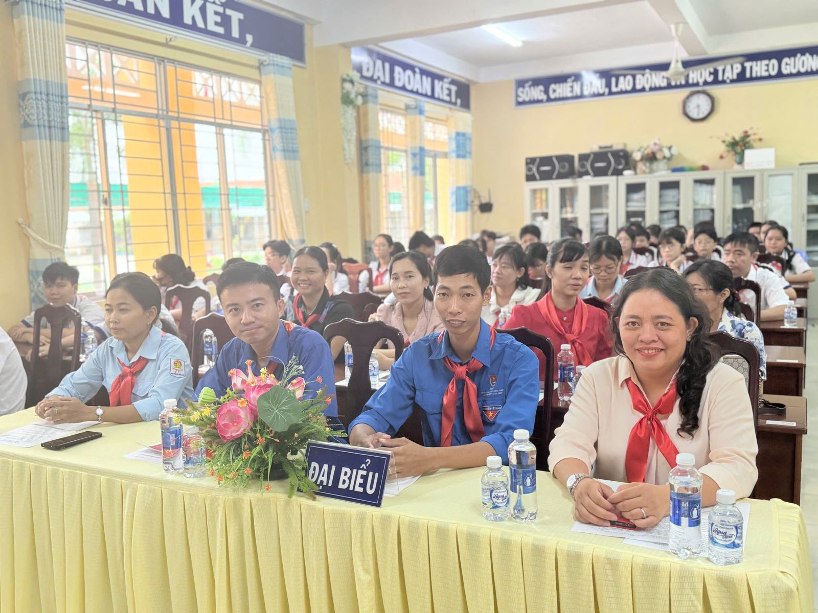 Đại hội vinh dự được đón tiếp anh Nguyễn Khắc Điệp – Phó Bí thư Đoàn TNCS Hồ Chí Minh xã Tân Tập và cô Nguyễn Thị Tuyết Loan – Phó Bí thư Chi bộ, Phó Hiệu trưởng nhà trường đến dự và phát biểu chỉ đạo. Đại hội cũng vui mừng chào đón quý thầy cô giáo, các anh chị phụ trách chi đội cùng 53 đại biểu chính thức là những đội viên ưu tú, đại diện cho 27 chi đội trong toàn trường.